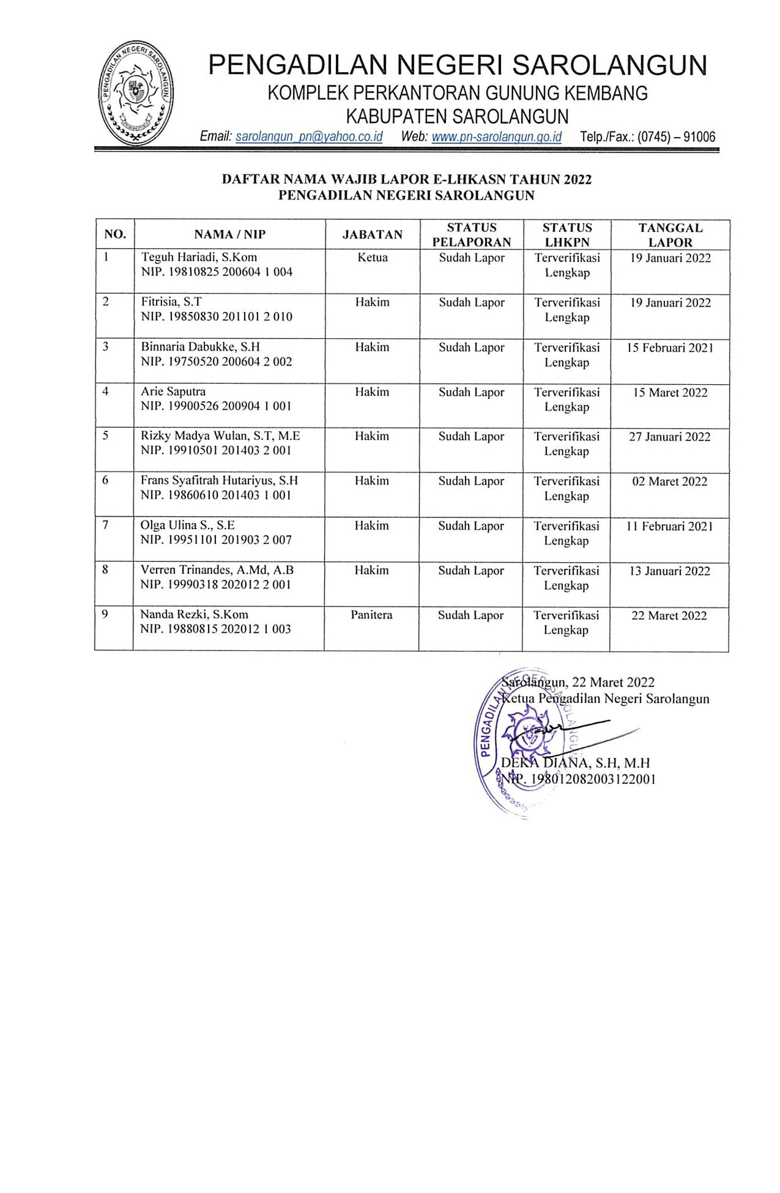 | 11. | WILLIAM EDWARD SIBARANI, S.H. | CPNS/Staf Kepaniteraan Hukum | Unduh File PDF |