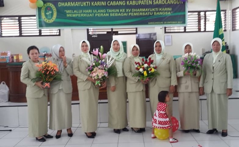 Pada Hari Kamis tanggal 26 Oktober 2017, Dengan tema “Melalui Hari Ulang Tahun Ke XV. Dharmayukti Karini Memperkuat Peran Sebagai Pemersatu Bangsa." melaui kegiatan Dharamayukti Karini Cabang Kabupaten Sarolangun, terselenggara dengan sukses dan meriah, bertempat di ruang Cakra Pengadilan Negeri Sarolangun. Acara ini dihadiri oleh Keluarga Besar dari Pengadilan Negeri Sarolangun dan Pengadilan Agama Sarolangun,