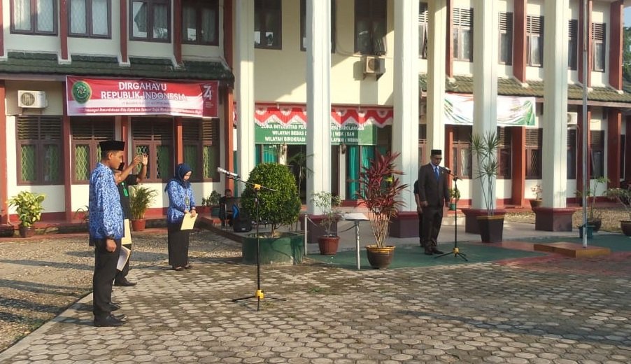 Pembina upacara membacakan sambutan Amanat dari Ketua Mahkamah Agung RI dengan Tema : "Peradilan Modern Berbasis Teknologi Informasi Untuk Melayani" bertepatan dengan momentum Hari Jadi Mahkamah Agung ke-74 ini,mari kita bersama-sama mewujutka keunggukan indonesia dengan berkontribusi secara maksimal dallam peran yang kita emban dilembaga Peradilan. Lembaga Peradilan merupakan rumah rumah besar yang harus kita jaga sebagai tumpuan harapan para pencari keadilan. Berikan layanan terbaik kepada para penerima layanan peradilan dengan memanfaatan berbagai kemudahan yang berasal dari pemanfaatan teknologi informasi.