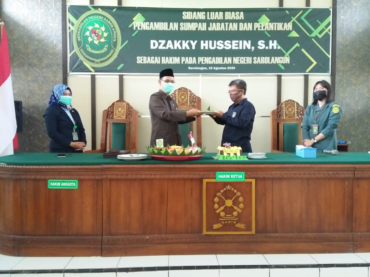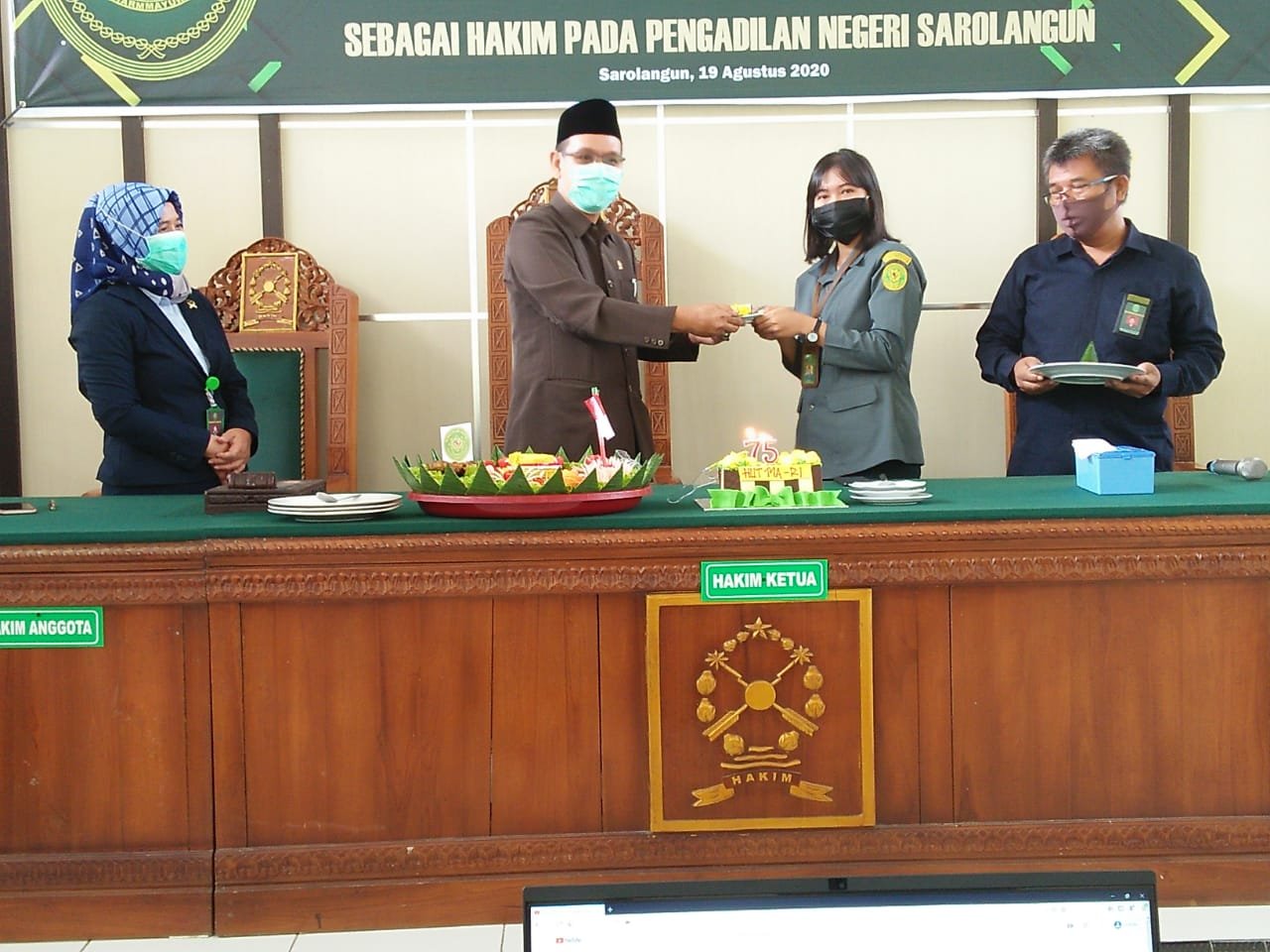 Pada hari Rabu, tanggal 19 Agustus 2020, keluarga besar Pengadilan Negeri Sarolangun mengikuti Upacara Peringatan HUT Ke-75 Mahkamah Agung Tahun 2020 yang dilaksanakan di Gedung Mahkamah Agung secara virtual di Ruang Sidang Cakra Pengadilan Negeri Sarolangun.