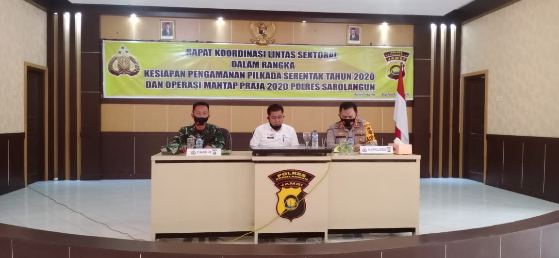 Pada hari Rabu, tanggal 02 September 2020, Ketua Pengadian Negeri Sarolangun diwakili oleh Bapak Reindra Jasper H. Sinaga, S.H. memenuhi undangan dari Polres Sarolangun dalam acara Rapat Koordinasi Lintas Sektoral Dalam Rangka Kesiapan Pengamanan Pilkada Serentak Tahun 2020 dan Operasi Mantap Praja 2020 Polres Sarolangun Kabupaten Sarolangun.