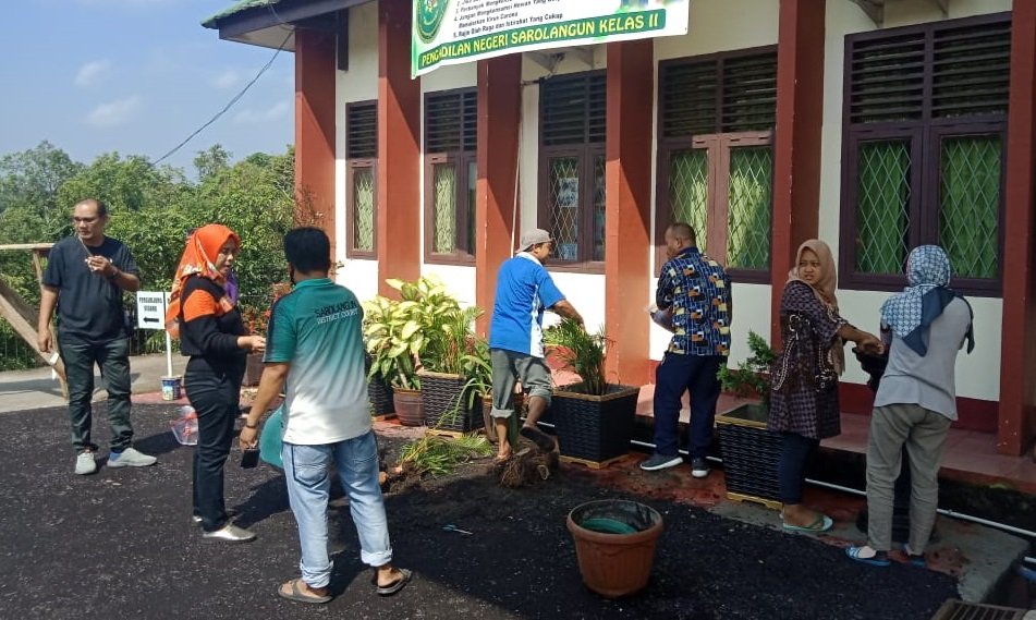 Pada Hari Jum'at tanggal 18 September 2020 bertempat di Halaman dan Taman Pengadilan Negeri Sarolangun Kelas II, telah dilaksanakan kegiatan “Jum’at Bersih” dengan bergotong royong yang rutin dilakukan setiap bulannya.Kegiatan ini dimulai pada pukul 08.00 WIB langsung di pimpin atau dikoordinir langsung oleh Bapak Phillip Mark Soentpiet, S.H., M.H. Ketua Pengadilan Negeri Sarolangun serta diikuti oleh Ibu Wakil Ketua, para Hakim, Panitera, Sekretaris, Pejabat Struktural maupun Fungsional, serta seluruh Staf Pegawai PNS dan Honerer / PPNPN Pengadilan Negeri Sarolangun.