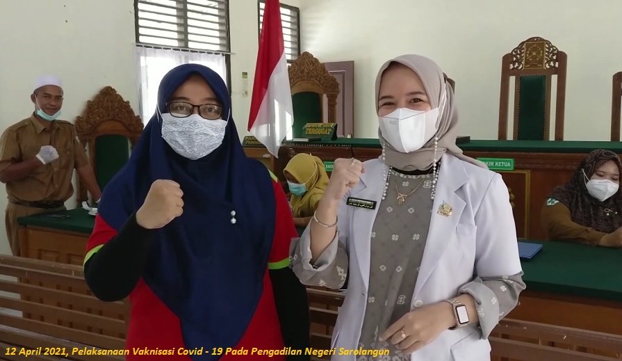 Pada hari Senin tanggal 12 April 2021, bertempat diruang Sidang Candra Pengadilan Negeri Sarolangun, dalam rangka Pelaksanaan Vaksinasi Covid-19 Tahap Pertama Pada Pengadilan Negeri Sarolangun yang bekerja sama dengan Dinas Kesehatan Kabupaten Sarolangun, Vaksinasi di tujukan terhadap Pimpinan Ketua, Wakil Ketua, Para Hakim, Panitera, Sekretaris, Pejabat Struktural, Pejabat Fungsional, Staf Pegawai PNS dan Honorer PPNPN Pengadilan Negeri Sarolangun Kelas II, dengan harapan memberikan kekebalan dan daya tahan terhadap Virus Covid-19