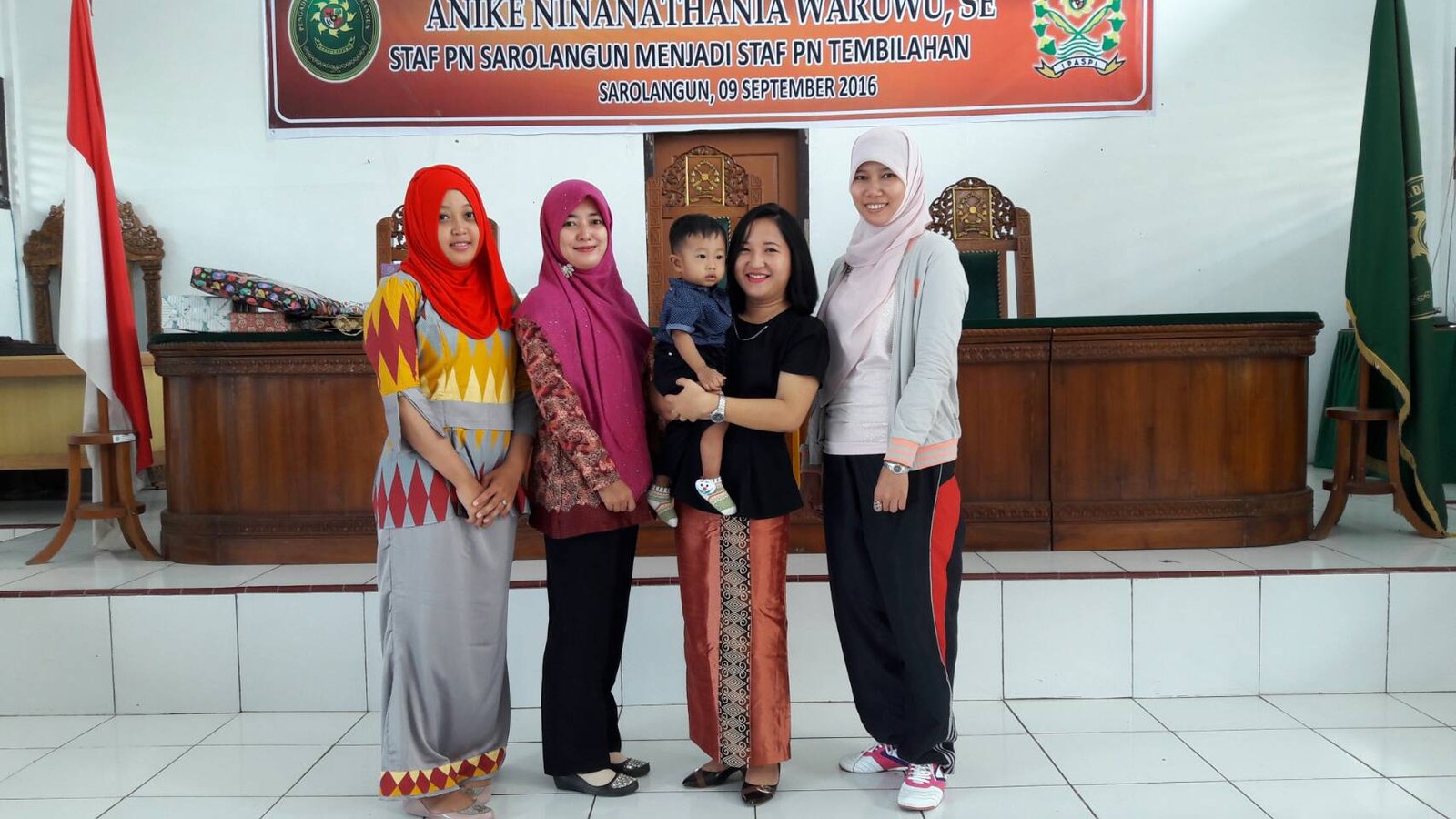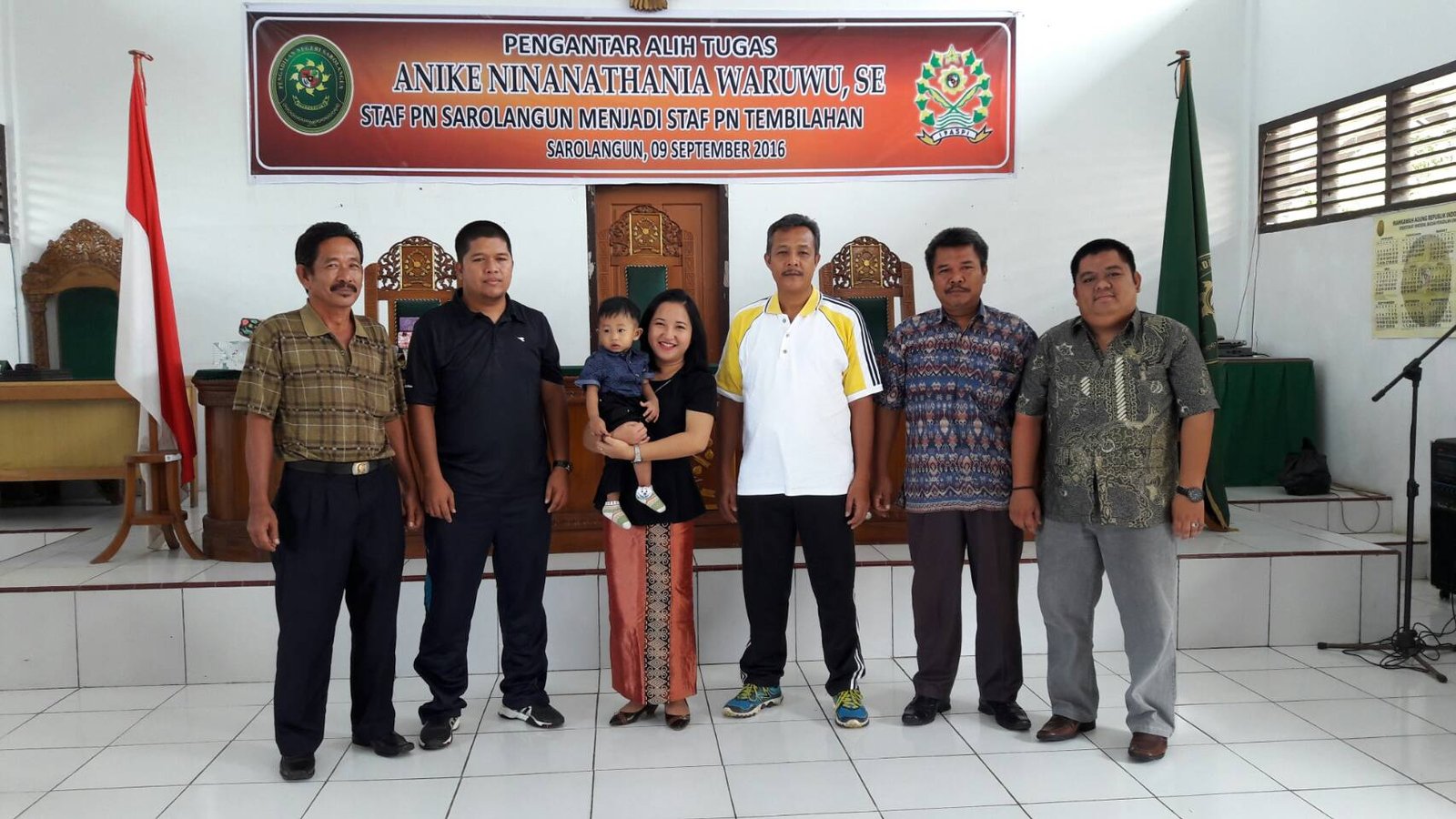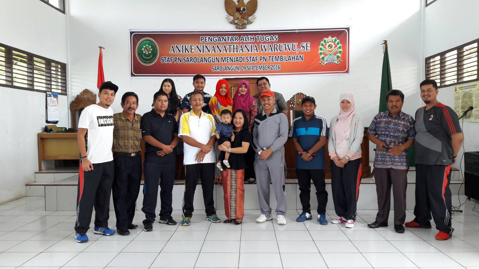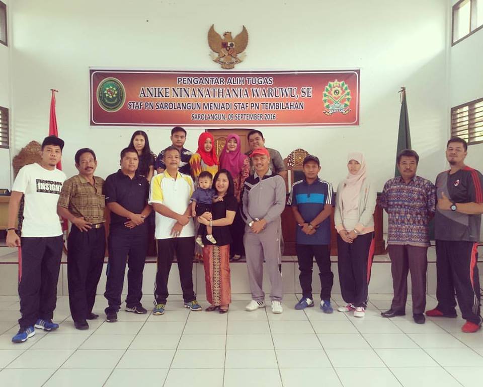 Bertempat di Ruang Sidang Utama Pengadilan Negeri Sarolangun, seluruh Keluarga Besar Pengadilan Negeri Sarolangun mengadakan acara Perpisahan dan Pengantar Tugas Ibu. Anike Ninanathania Waruwu, SE. Staf Pegawai Pengadilan Negeri Sarolangun menjadi Staf Pegawai Pengadilan Negeri Tembilahan. Acara dihadiri Seluruh Keluarga Besar Pengadilan Negeri Sarolangun.