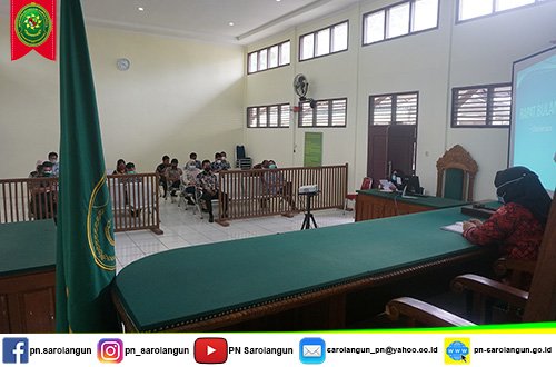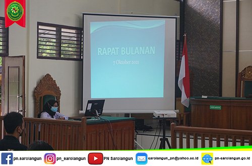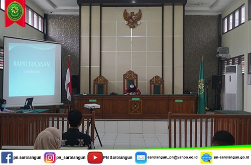 Pada hari Kamis, tanggal 07 Oktober 2021, Segenap Jajaran Pimpinan dan Staff di Pengadilan Negeri Sarolangun mengadakan rapat rutin bulanan yang dilaksanakan di Ruang Sidang Cakra Pengadilan Negeri Sarolangun.