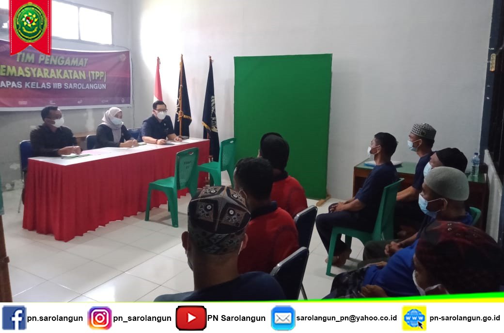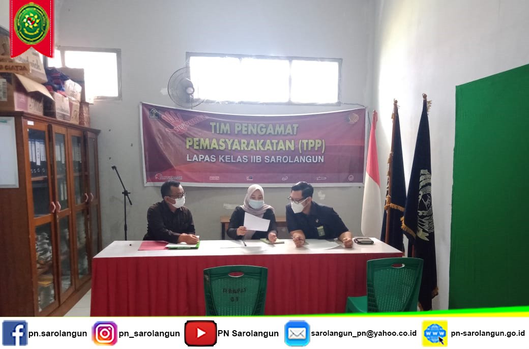 Pada hari Selasa, tanggal 19 Oktober 2021, Tim Pengamat Pemasyarakatan (TPP) Pengadilan Negeri Sarolangun melakukan pengawasan dan pengamatan terhadap pelaksanaan putusan Pengadilan Negeri Sarolangun oleh Hakim Pengawas dan Pengamat ke Lapas Kelas IIB Sarolangun. Pelaksanaan ini me