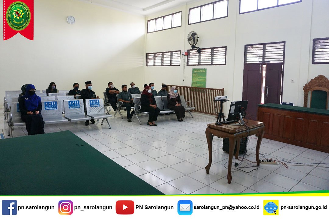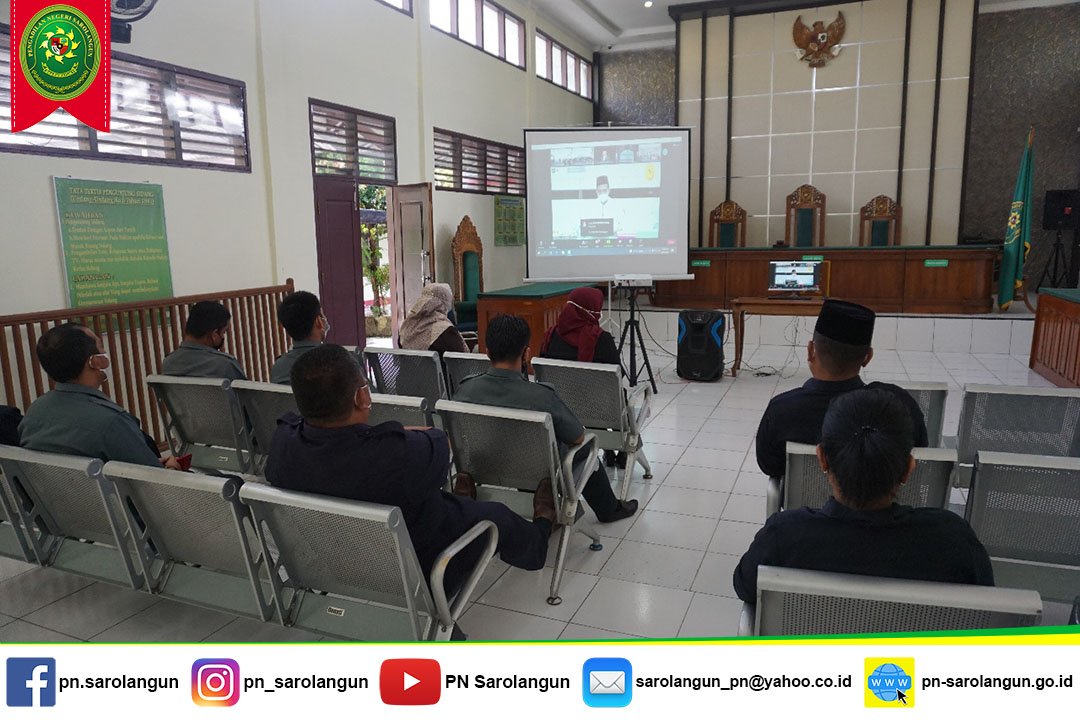 Pada hari Selasa, tanggal 26 Oktober 2021, Bertempat di ruang sidang Cakra, Hakim, Panitera dan ASN Pengadilan Negeri Sarolangun mengikuti tausiah virtual yang diadakan oleh Ditjen Badan Peradilan Umum. Tausiah ini diadakan dalam rangka