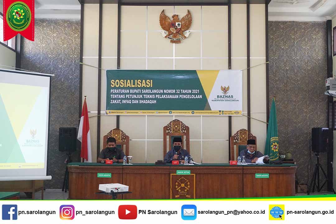 Rabu, 1 Desember 2021 - Bertempat di ruang sidang Cakra Pengadilan Negeri Sarolangun, Tim Baznas Kabupaten Sarolangun mengadakan sosialisasi mengenai Peraturan Bupati Nomor 32 Tahun 2021 tentang