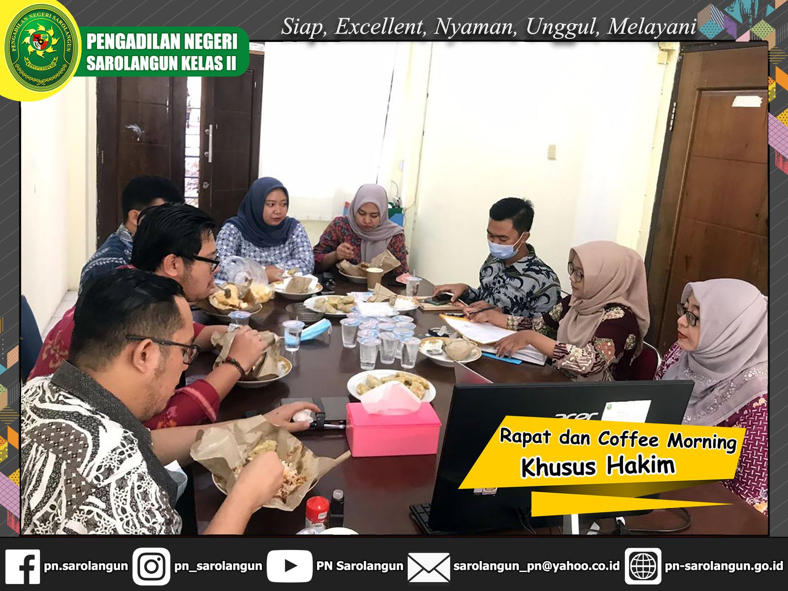 Email Print Rapat dan Coffee Morning Khusus Hakim Kamis, 20 Januari 2022 - Para Hakim yang dipimpin oleh Wakil Ketua Pengadilan Negeri Sarolangun mengadakan rapat dan coffee morning pukul 08.00 WIB bertempat di ruang mediasi Pengadilan Negeri Sarolangun. < Prev Next >