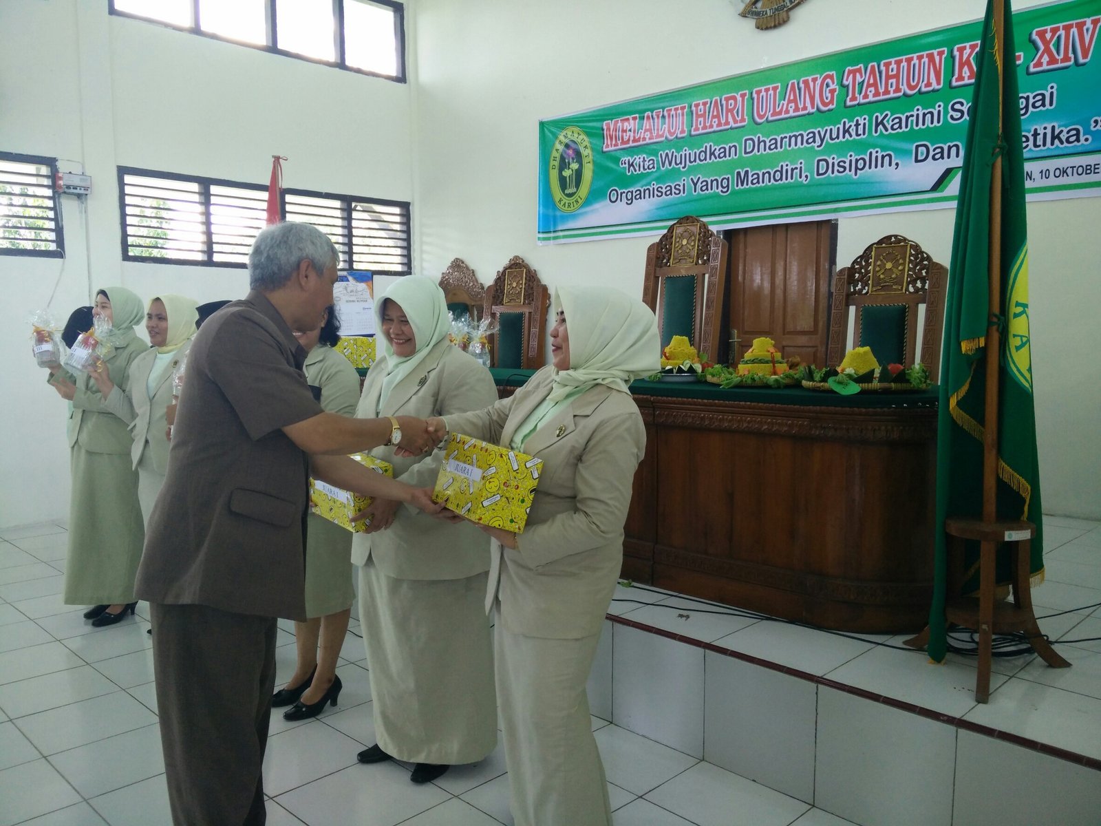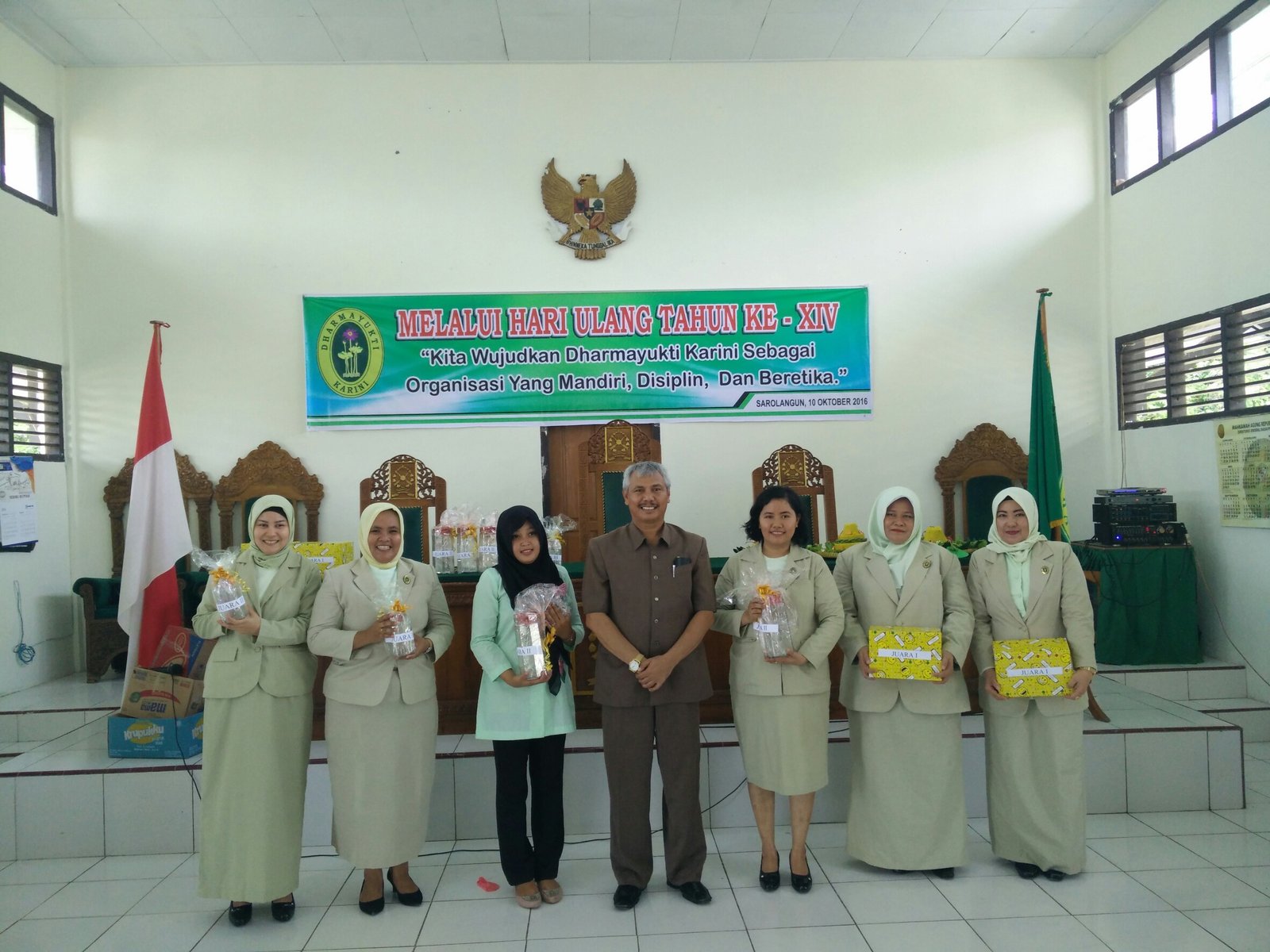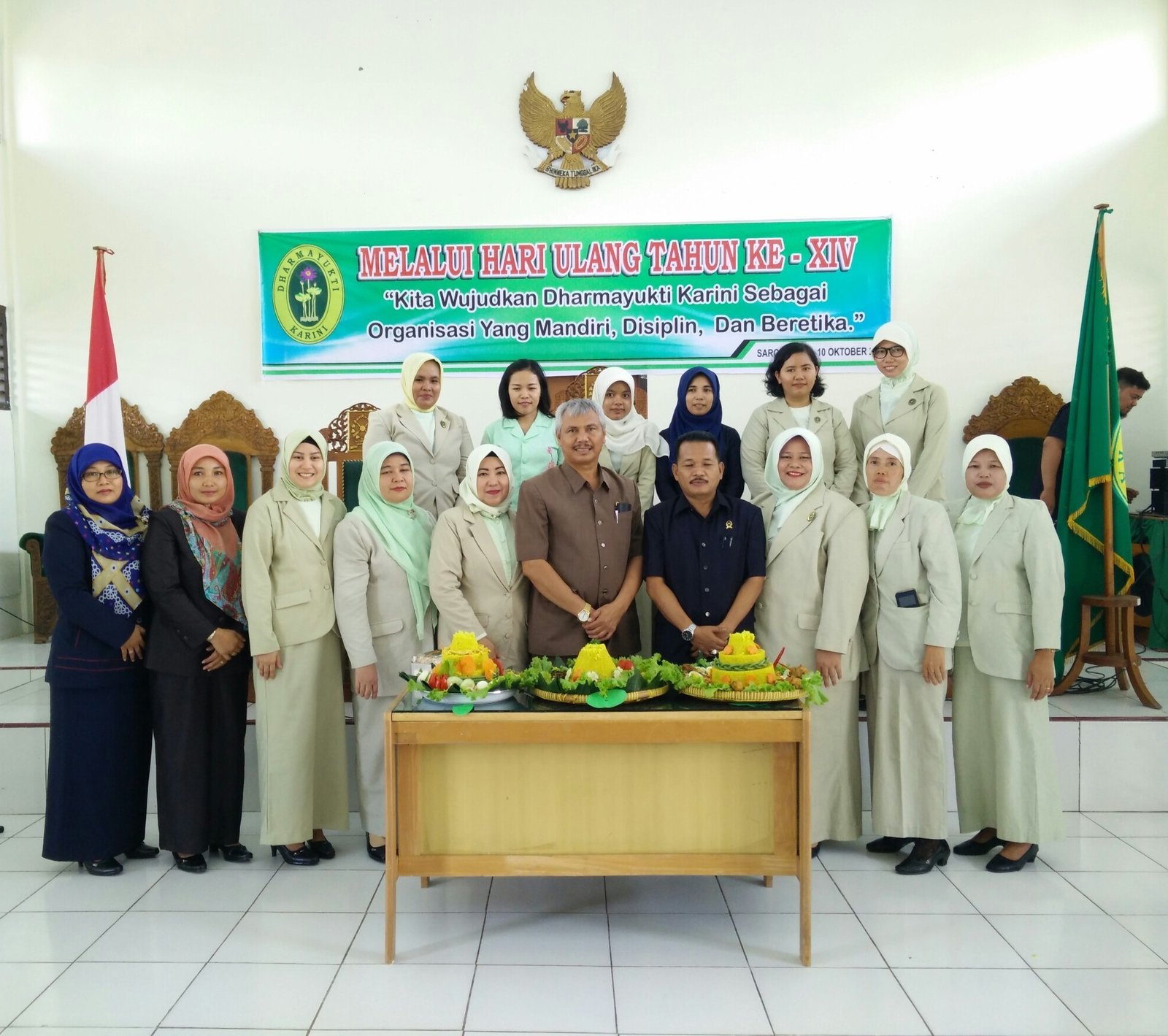 Dengan tema “Kita Wujudkan Dharmayukti Karini Sebagai Organisasi Yang Mandiri, Disiplin dan Beretika." melaui HUT Dharamayukti Karini ke XIV Cabang Kabupaten Sarolangun, terselenggara dengan sukses dan meriah, bertempat di ruang sidang Pengadilan Negeri Sarolangun. Acara ini dihadiri oleh Keluarga Besar dari Pengadilan Negeri Sarolangun dan Pengadilan Agama Sarolangun,