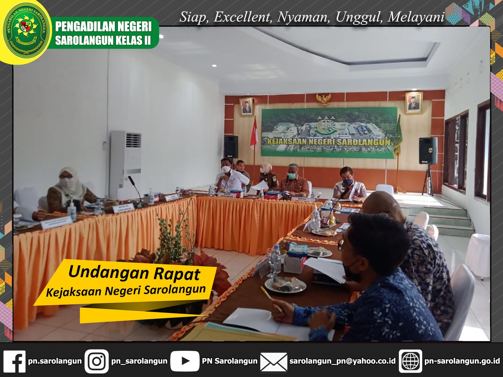 Kamis, 27 Januari 2022 - Wakil Ketua Pengadilan Negeri Sarolangun, Ibu Deka Diana, S.H., M.H. menghadiri undangan rapat oleh Kejaksaan Negeri Sarolagun. Bertempat di Aula Kejaksaan Negeri Sarolangun, rapat ini membahas pelaksanaan Pembebasan Lahan untuk Pembangunan Jaringan Irigasi di Batang Asai.