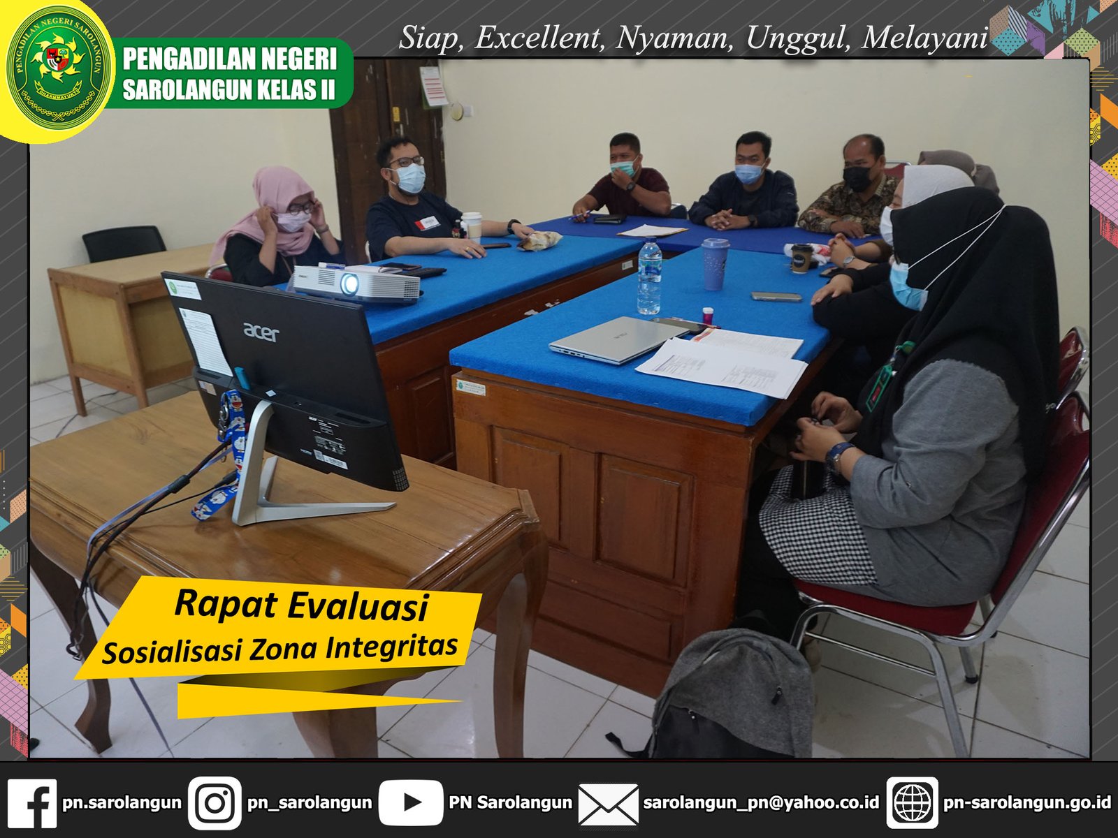 Jum'at, 04 Februari 2022 - Bertempat di Ruang Sidang Anak Pengadilan Negeri Sarolangun, telah dilaksanakan Rapat Monitoring dan Evaluasi Zona Integritas. Peserta rapat terdiri dari Hakim, Panitera, dan Sekretaris. Rapat dipimpin oleh Wakil Ketua Pengadilan Negeri Sarolangun, Ibu Deka Diana, S.H., M.H.