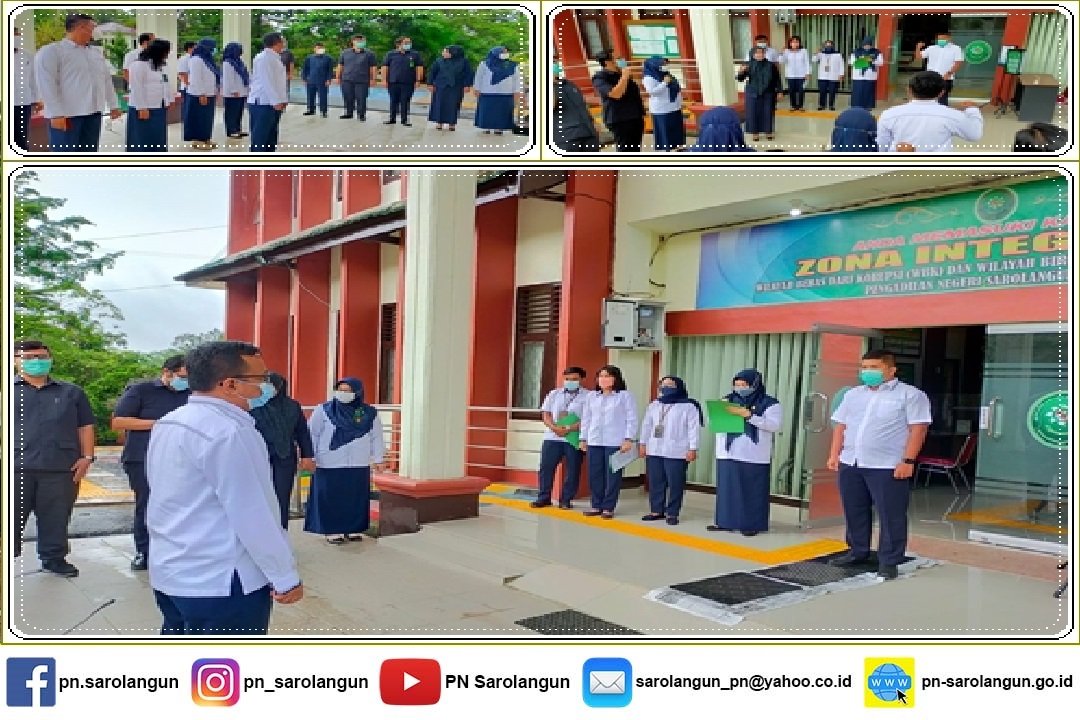 Pada hari Senin, 14 Maret 2022, bertempat di halaman kantor Pengadilan Negeri Sarolangun telah dilaksanakan Apel Pagi, yang diikuti oleh Ketua, para Hakim, Panitera, Sekretaris, Pejabat Struktural, Pejabat Fungsional, Staf Pegawai PNS dan Honorer PPNPN Pengadilan Negeri Sarolangun.