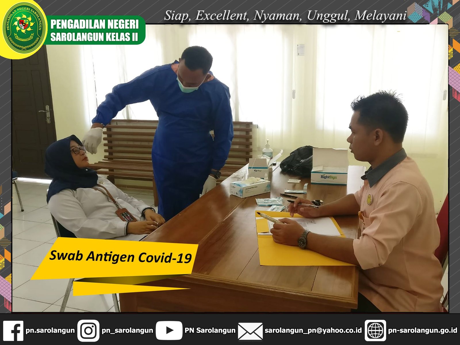 Senin, 04 Juli 2022 - Bertempat di Ruang Sidang Anak Pengadilan Negeri Sarolangun, kembali dilaksanakan Swab Antigen kepada seluruh ASN PN Sarolangun meski telah di Booster sebagai kewaspadaan dan antisipasi penularan Covid-19 di Lingkungan PN Sarolangun. Alhamdulillah hasil tes seluruh ASN PN Sarolangun hasilnya negatif, atau tidak ada satu orang pun yang terindikasi menderita Covid-19.