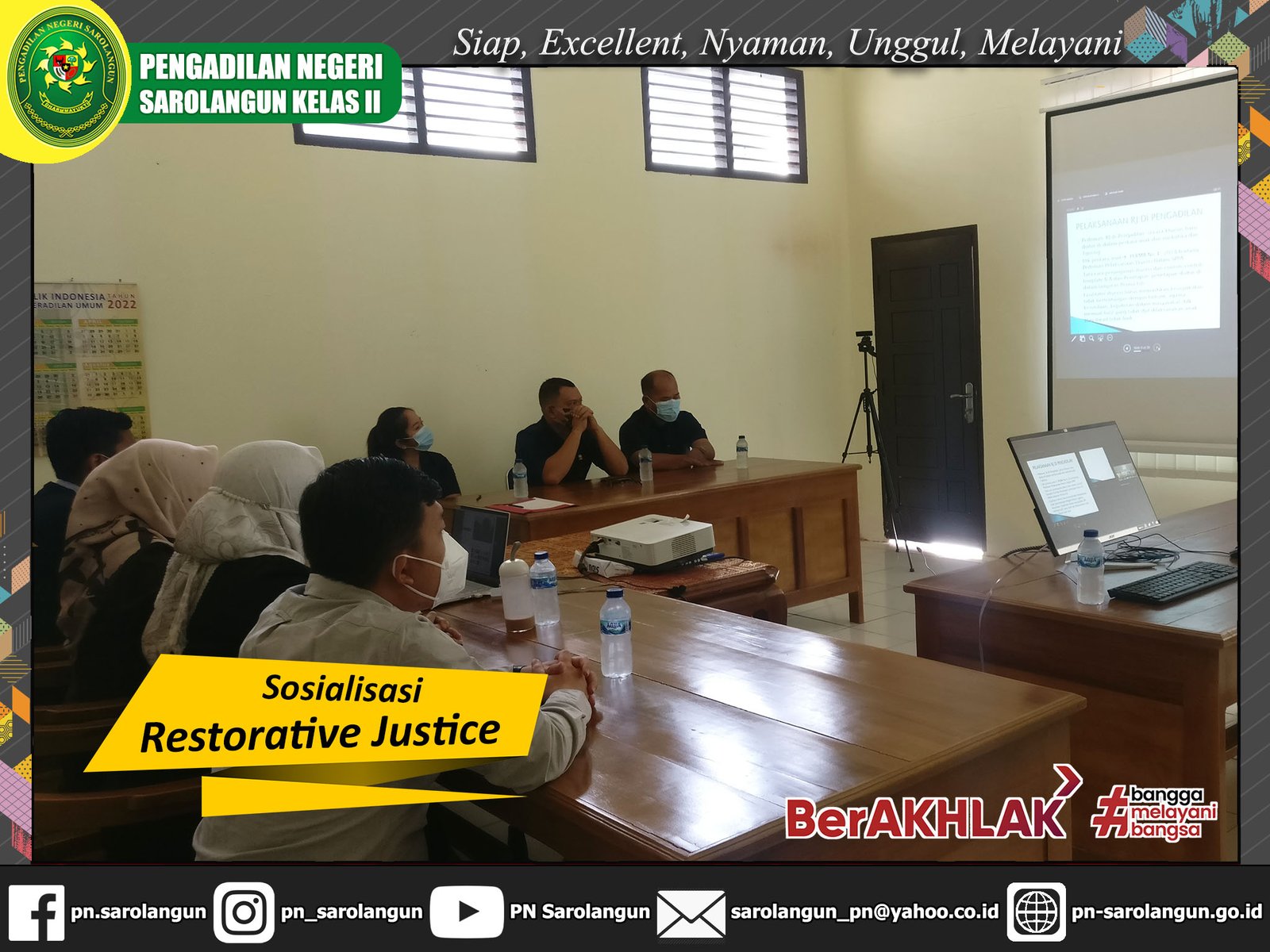 Rabu, 27 Juli 2022 - Bertempat di Ruang Sidang Anak, Ketua Pengadilan Negeri Sarolangun bersama dengan Para Hakim dan Panitera PN Sarolangun mengikuti sosialisasi Restorative Justice secara online melalui Zoom Meeting. Sosialisasi ini diadakan oleh Pengadilan Tinggi Jambi bersama dengan Pengadilan sehubungan dengan penerapan keadilan restorative dalam penanganan perkara pidana di lingkungan Pengadilan Tinggi Jambi dan Pengadilan Negeri di Wilayah Hukum Pengadilan Tinggi Jambi.