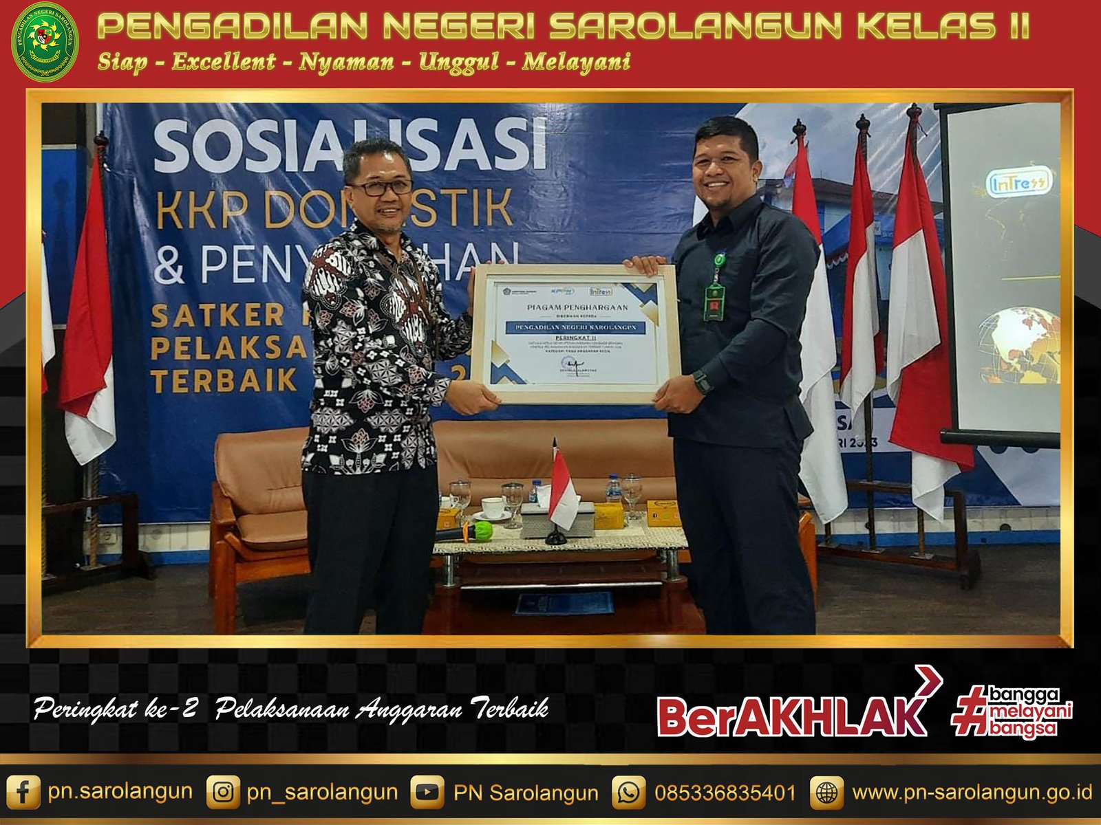 PN Sarolangun Meraih Peringkat ke-2 Pelaksanaan Anggaran Terbaik oleh KPPN Bangko