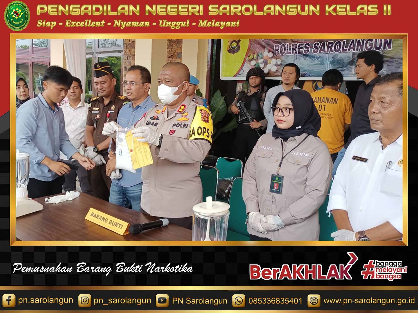 Email Print Pemusnahan Barang Bukti Narkotika Rabu, 10 Oktober 2023 - Ketua PN Sarolangun, Ibu Deka Diana, S.H., M.H. menghadiri acara Pemusnahan Barang Bukti Narkotika di Mapolres Sarolangun. < Prev Next >