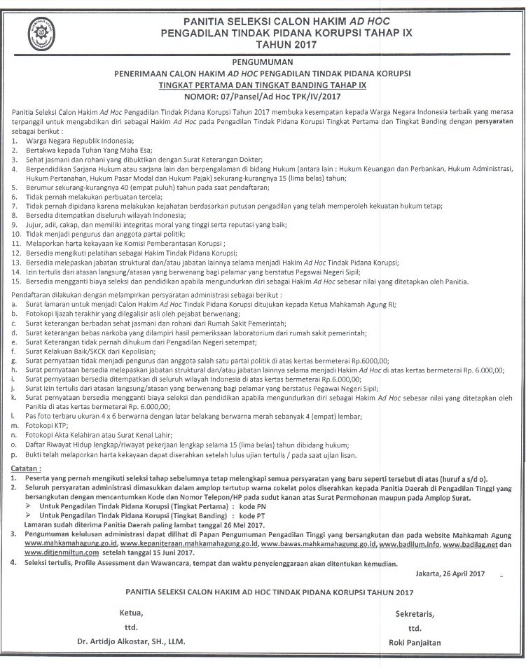 Email Print Penerimaan Calon Hakim Ad Hoc Pengadilan Tingkat Pidana Korupsi Tahap IX Tahun 2017 Continue Reading