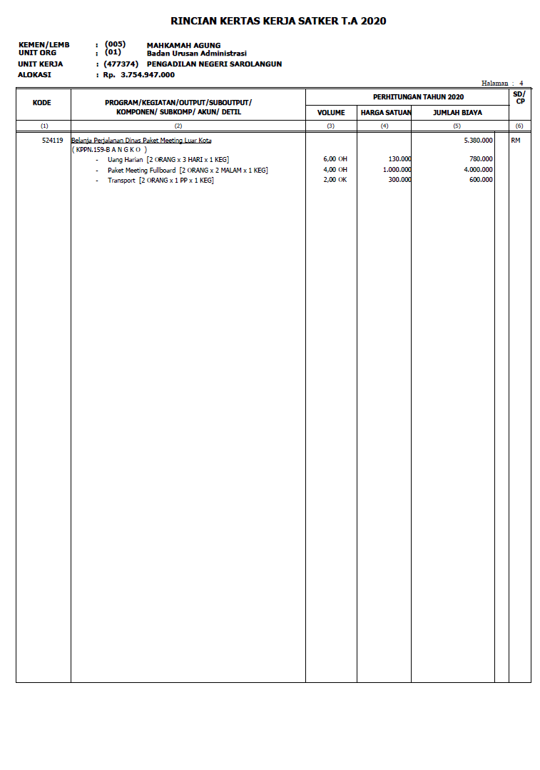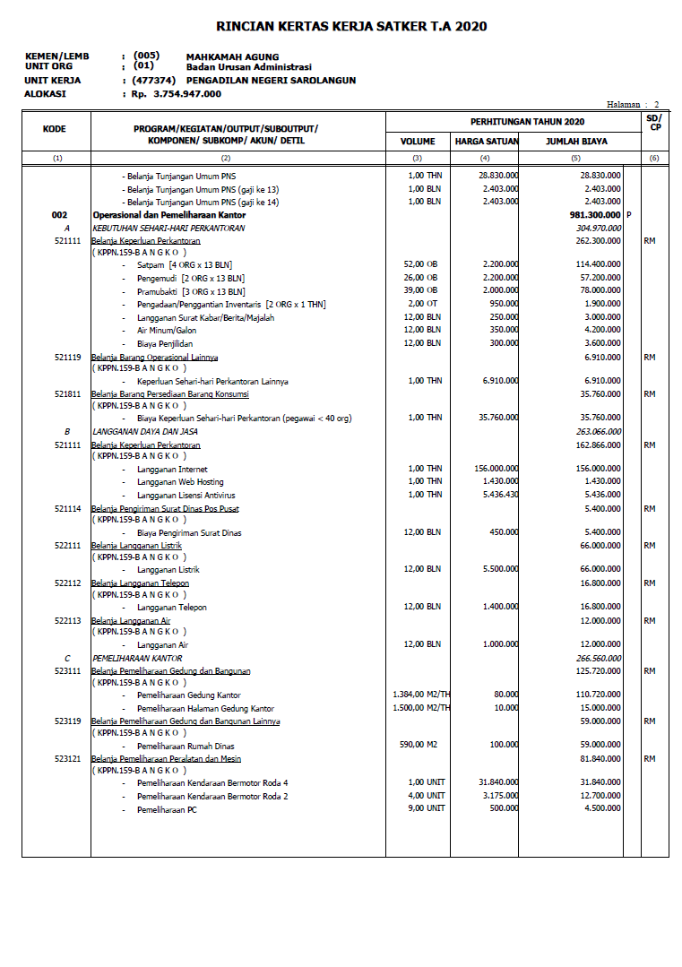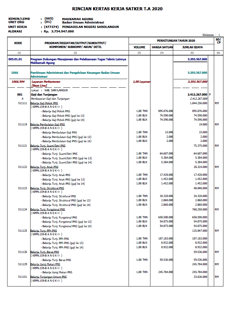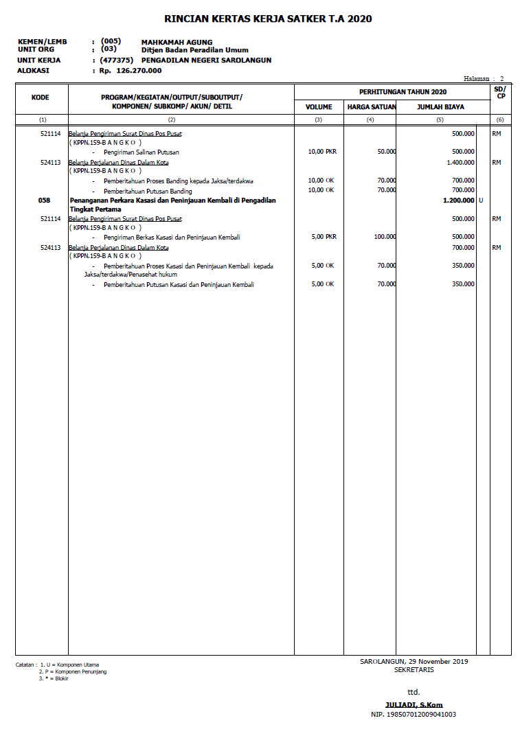 Email Print Rencana Kerja dan Anggaran - Kementrian Negara/Lembaga Tahun 2020 RKA-K/L DIPA Unit Ditjen Badan Peradilan Umum (03) Tahun 2020 RKA-K/L DIPA Unit Badan Urusan Administrasi (01) Tahun 2020