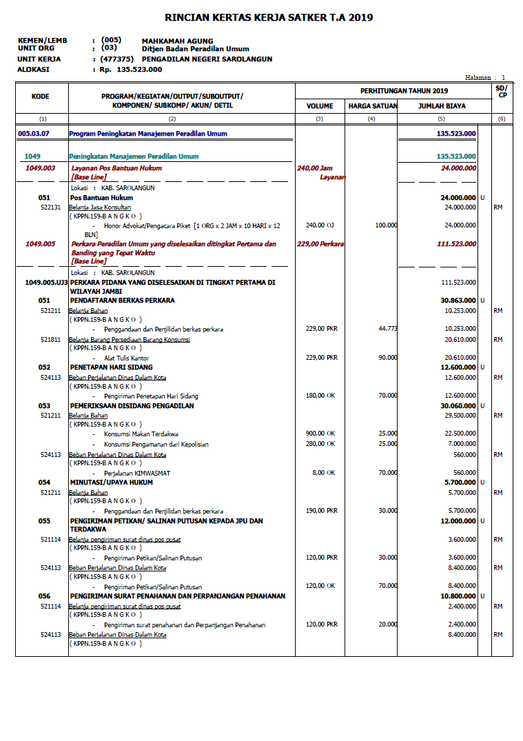 Email Print Rencana Kerja dan Anggaran - Kementerian Negara/Lembaga Tahun 2019 RKA-K/L DIPA Unit Ditjen Badan Peradilan Umum (03) Tahun 2019 RKA-K/L DIPA Unit Badan Urusan Administrasi (01) Tahun 2019