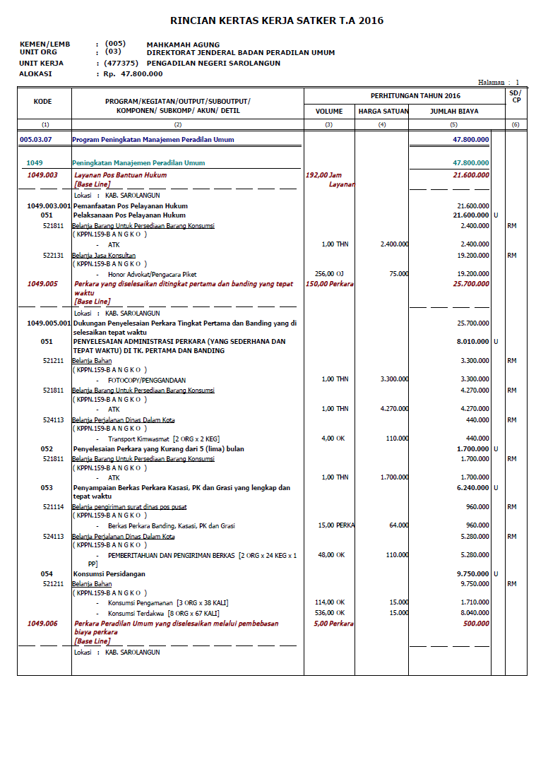 Email Print Rencana Kerja dan Anggaran - Kementerian Negara/Lembaga Tahun 2016 RKA-K/L DIPA Badan Peradilan Umum (03) Tahun 2016 RKA-K/L DIPA Badan Urusan Administrasi (01) Tahun 2016